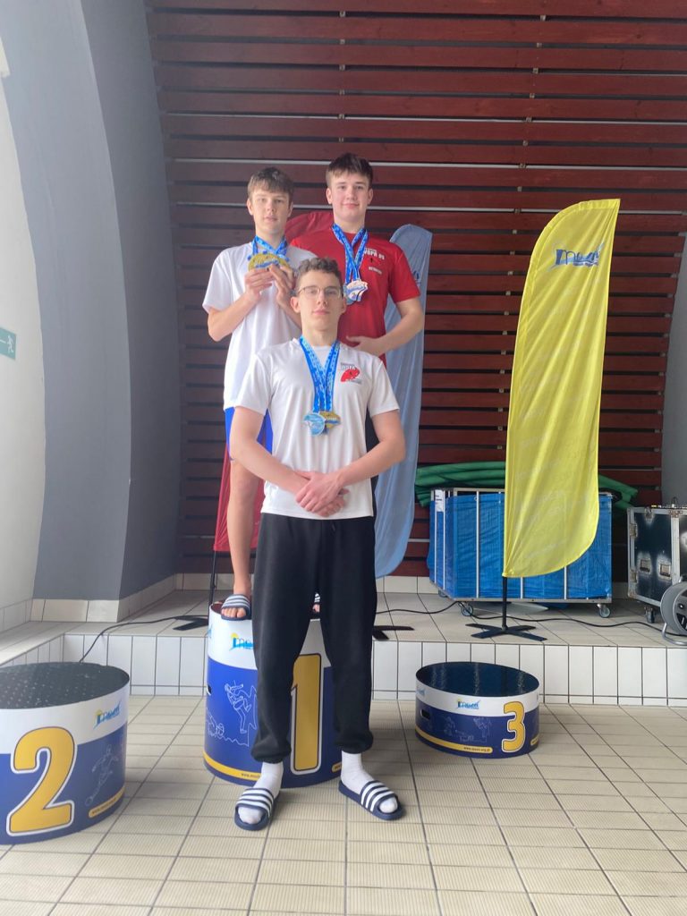 Gabrysia Grabowska, Mikołaj Pęza i Krzysztof Sobieski w sztafecie 4×50 dowolny mix – II miejsce w kategorii 15-18 lat