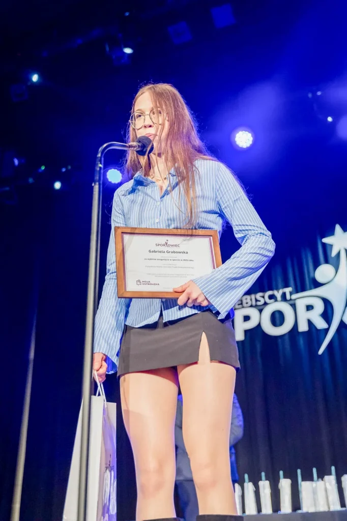 Podczas Finałowej Gali Plebiscytu na najlepszego sportowca roku 2025 z północno-wschodniego regionu Mazowsza nasza zawodniczka Gabriela Grabowska otrzymała wyróżnienie, które przyznał Prezydent Miasta Ostrołęki Paweł Niewiadomski.